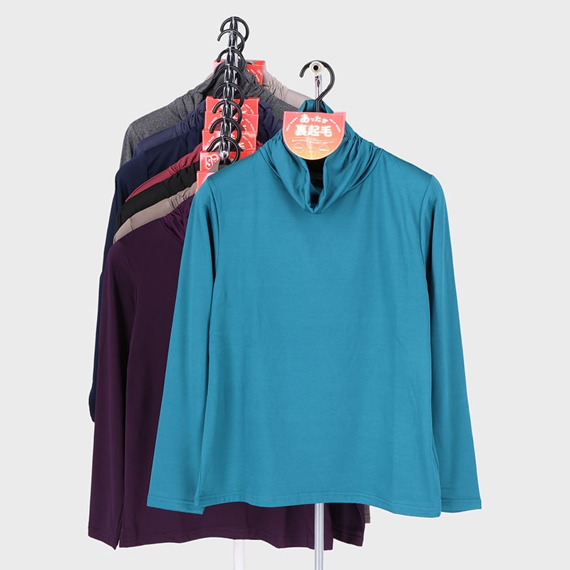 婦人ストレッチ裏起毛くしゅタートルネックTシャツ