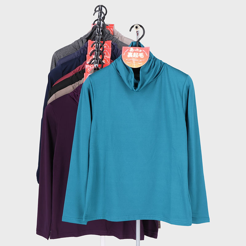 婦人大寸ストレッチ裏起毛くしゅタートルネックTシャツ
