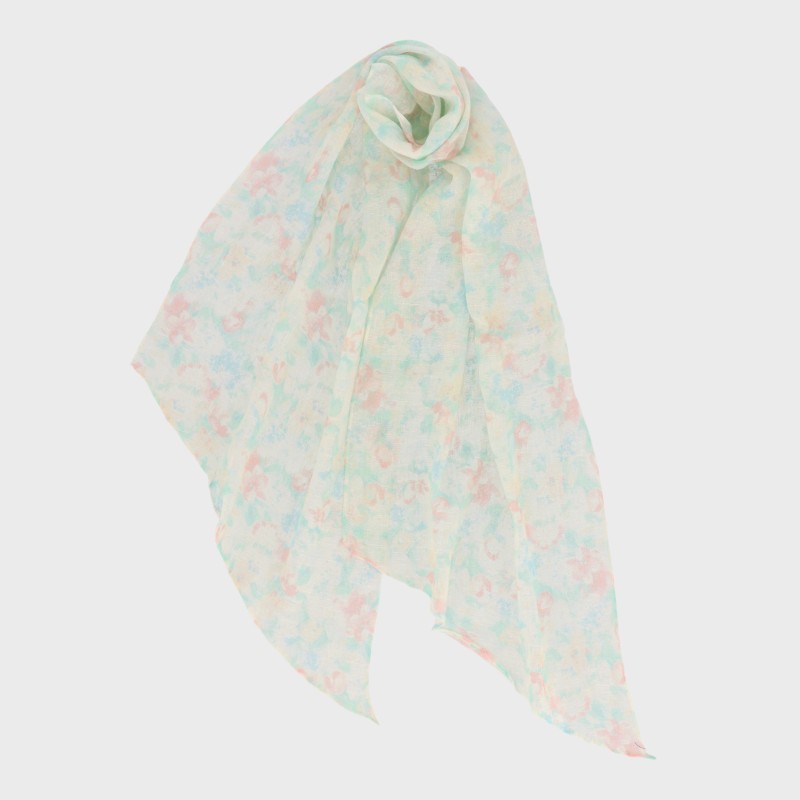 綿麻素材・剣先ストール(ぼかし花柄)/UVカット・ウォッシャブル