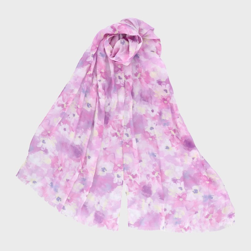 『冷感シリーズ』冷感UVレーヨンプリントストール(ぼかしフラワー柄)/UVカット・接触冷感