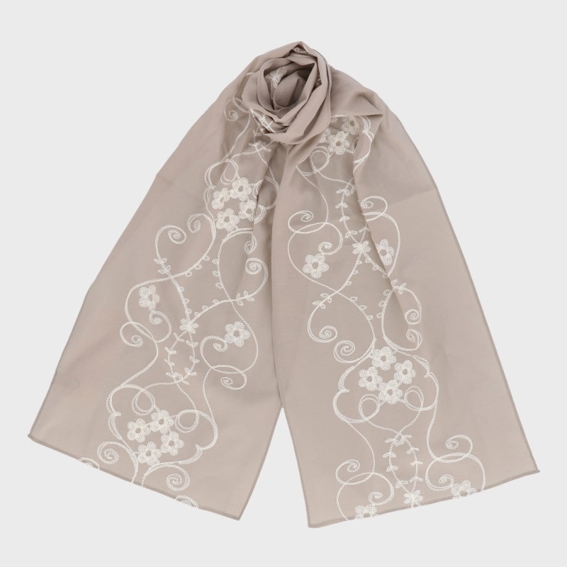 綿麻混やわらか刺しゅうストール(オーナメント柄)