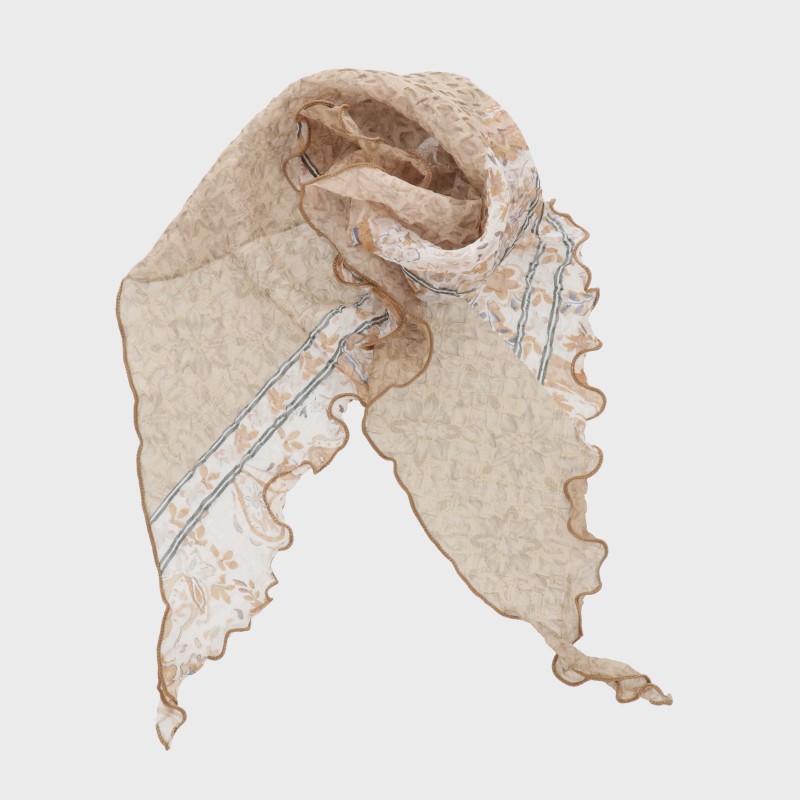 三角しわ加工プリントプチスカーフ(幾何柄)