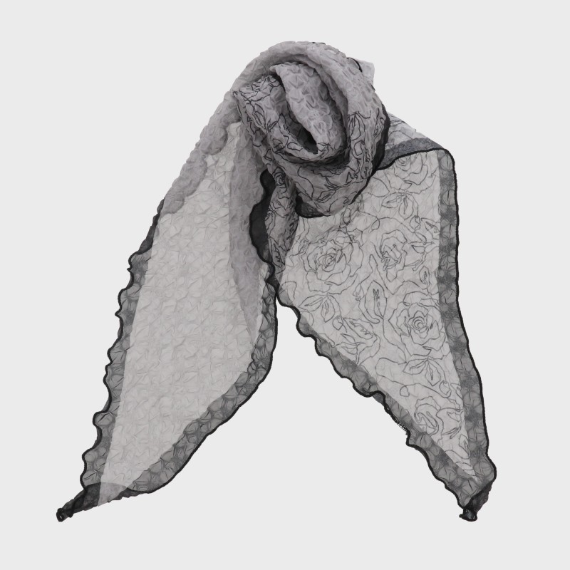 三角しわ加工プリントプチスカーフ(モノトーン柄)