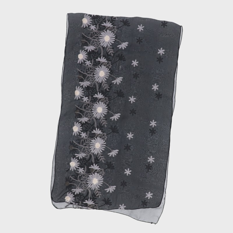 オーガンジー刺しゅうストール(フラワー柄)