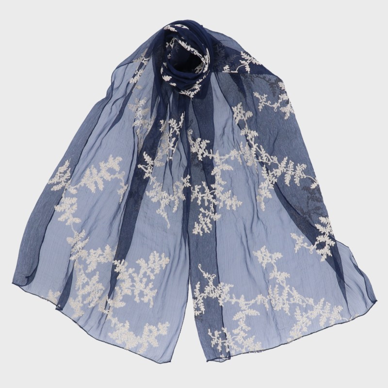 オーガンジー刺しゅうストール(リーフ柄)