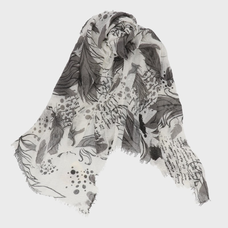 ワッシャー加工大判プリントストール(リーフ柄)