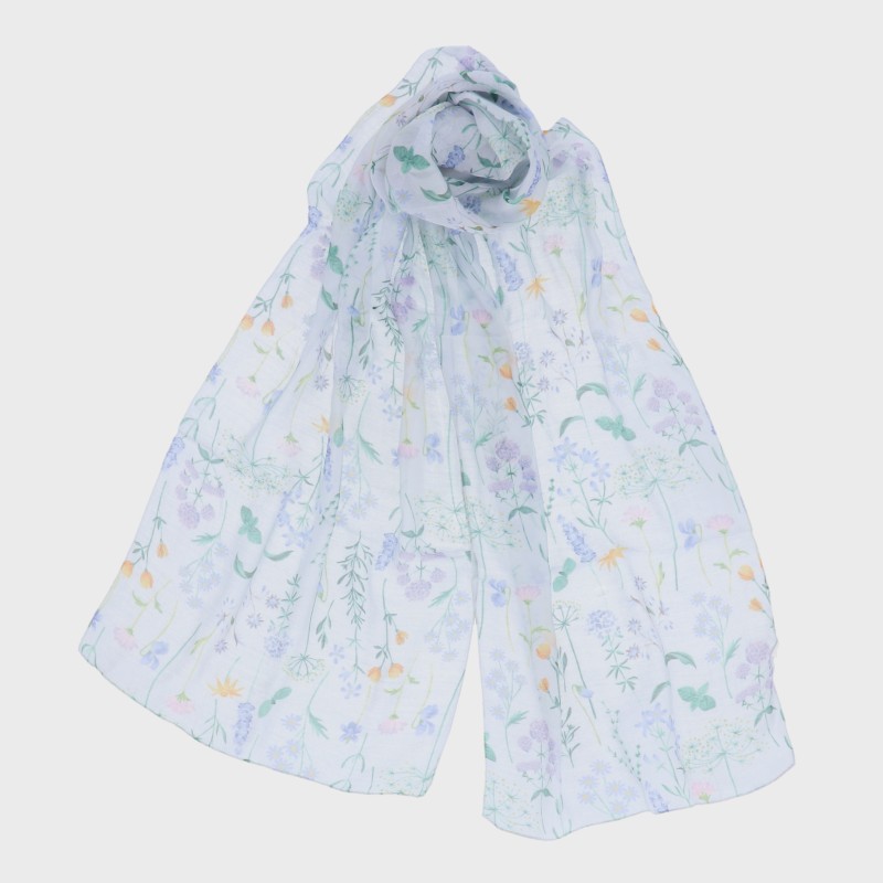 『インド製シリーズ』シルク混プリントストール(野原柄)