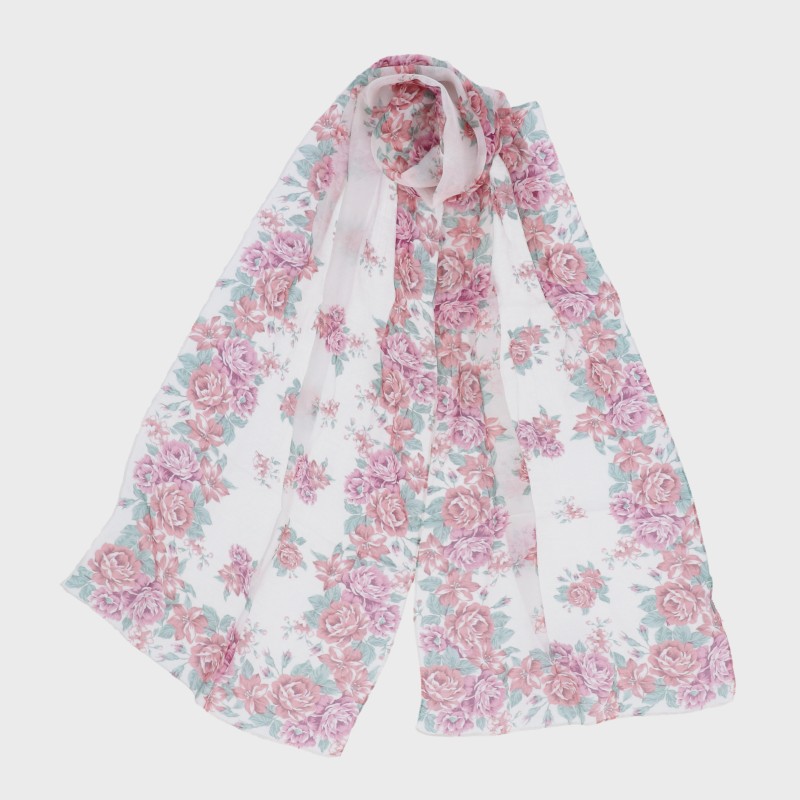 『インド製シリーズ』シルク混プリントストール(バラ柄)