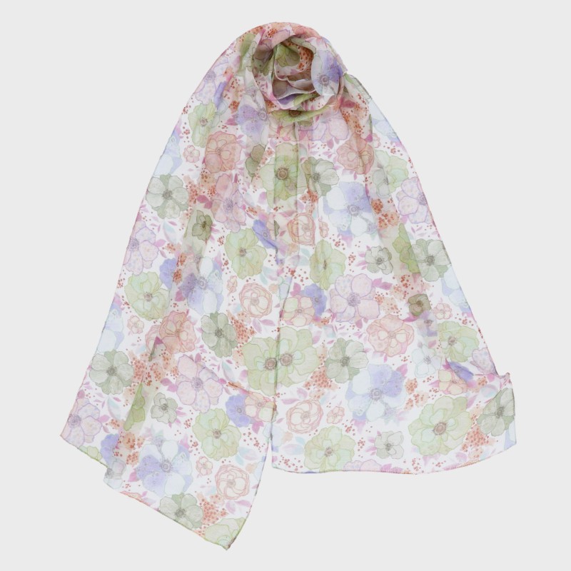 『インド製シリーズ』シルク混プリントストール(アンティークフラワー柄)