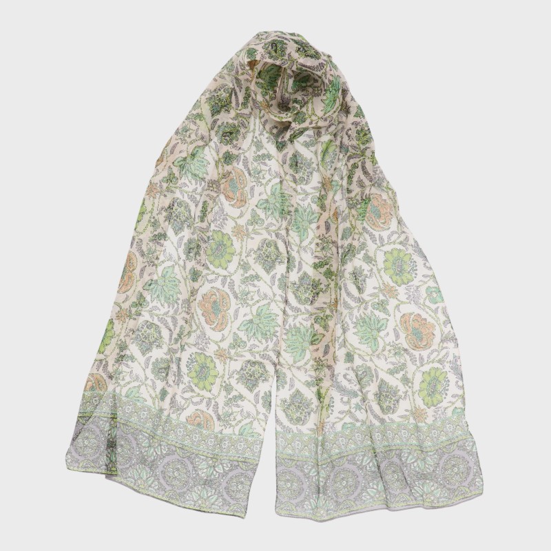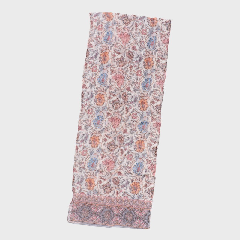『インド製シリーズ』シルク混プリントストール(クラシックフラワー柄)