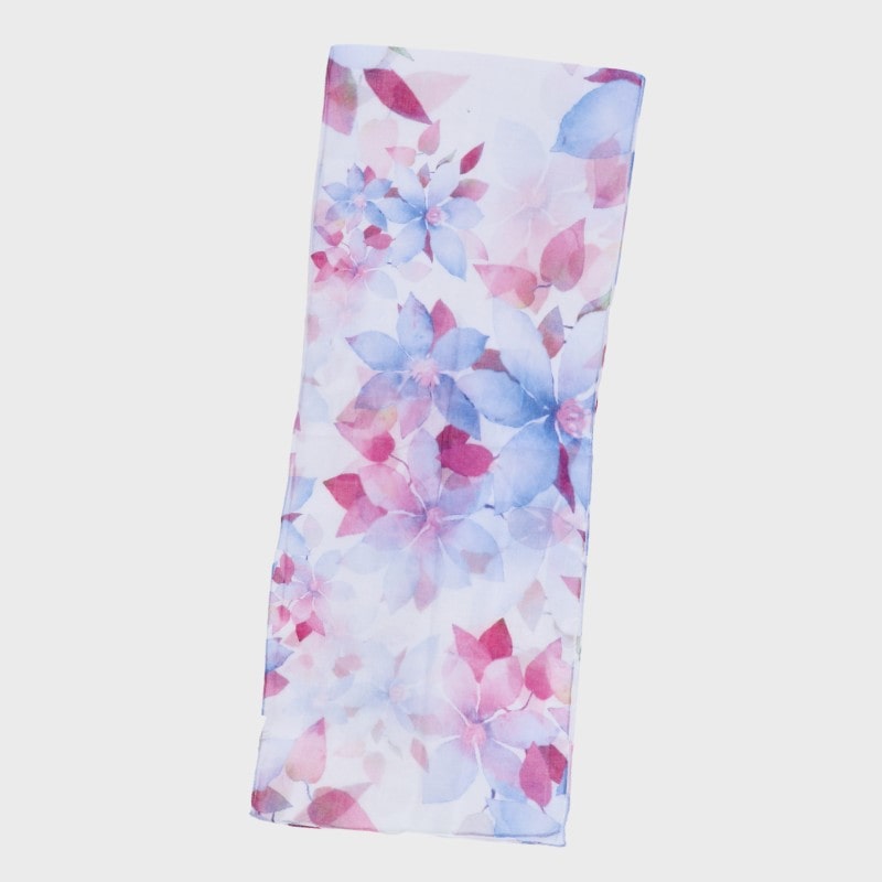 『インド製シリーズ』細幅プリントコットンスカーフ(水彩大花柄)
