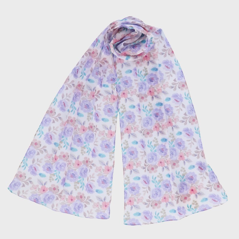 『インド製シリーズ』細幅プリントコットンスカーフ(カラフルローズ柄)