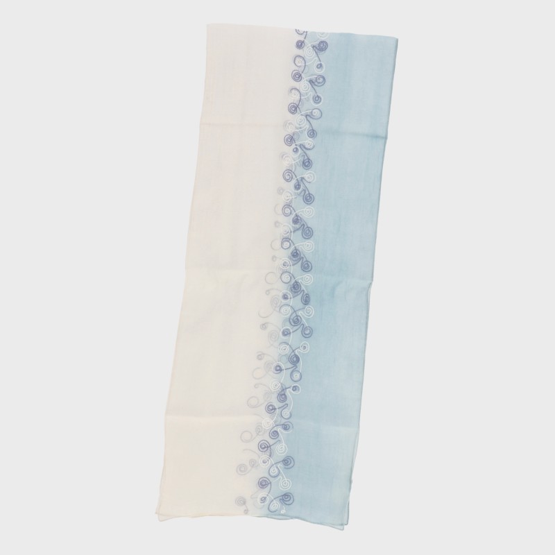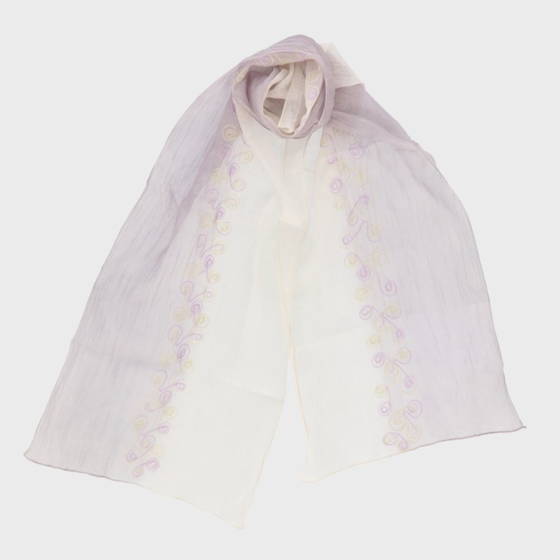 『インド製シリーズ』刺しゅう入りコットンシルクスカーフ(くるくるライン)