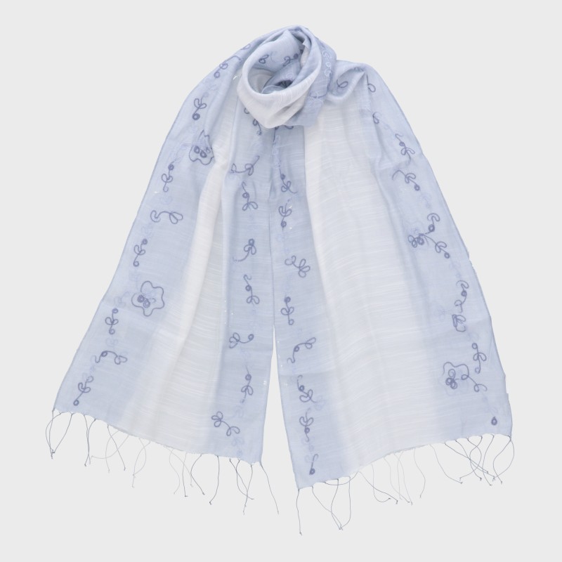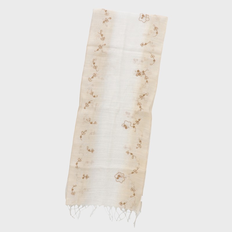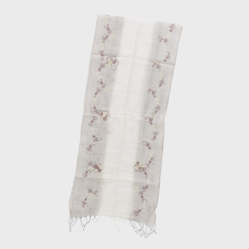 『インド製シリーズ』刺しゅう入りレーヨンシルクスカーフ(つたフラワー)