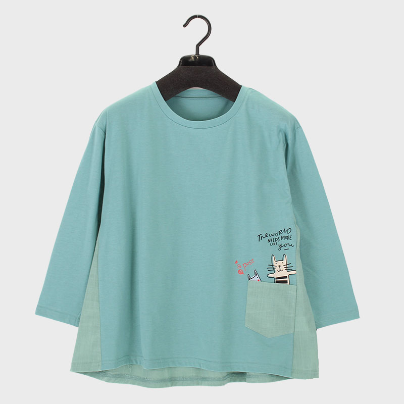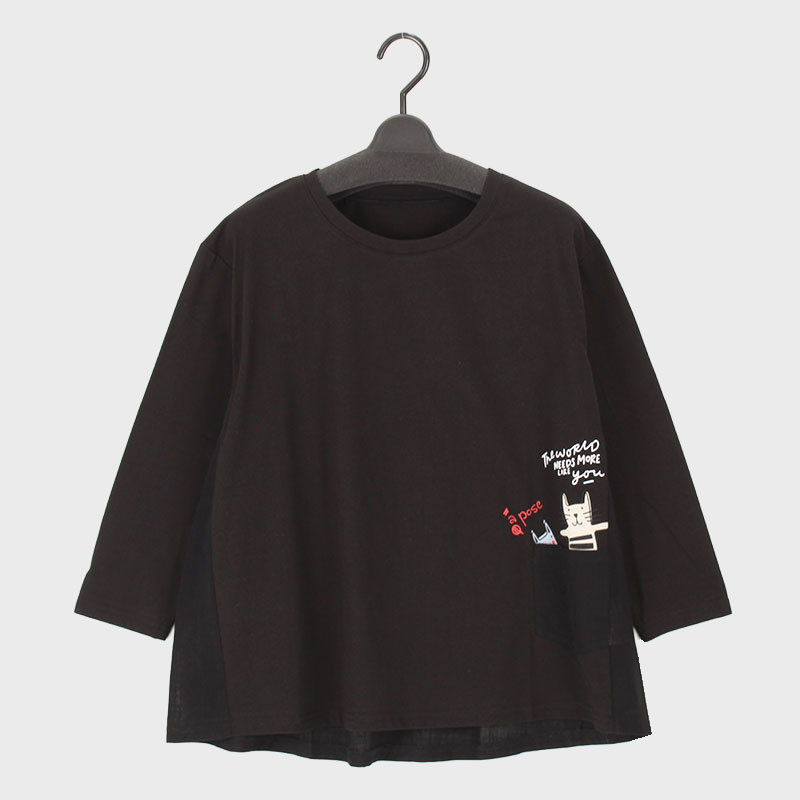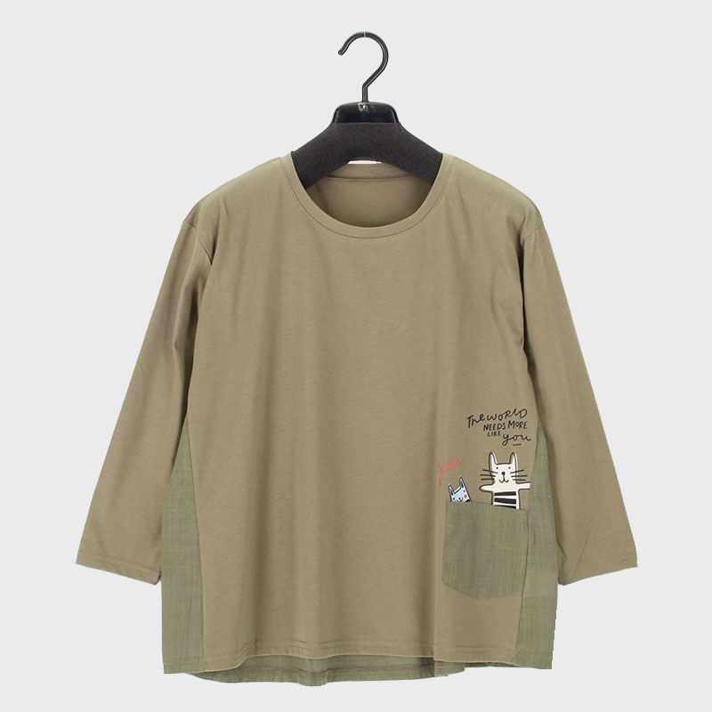大西衣料(株)が運営する、【公式】卸・仕入れサイト『SELF WEB SHOP』で 婦人7分袖ポケットネコTシャツ をお仕入れ!