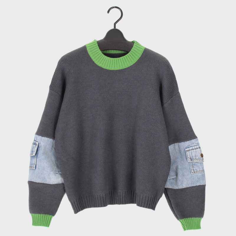 大西衣料(株)が運営する、【公式】卸・仕入れサイト『SELF WEB SHOP』で 婦人腕デニムポケット付きニットプルオーバー をお仕入れ!