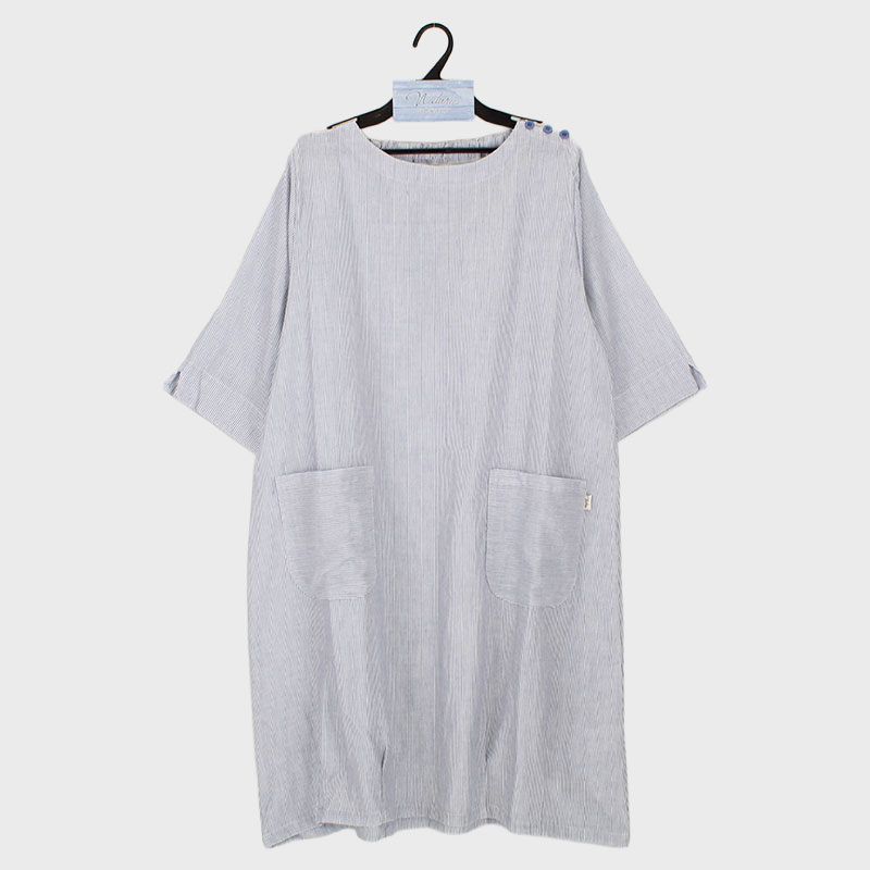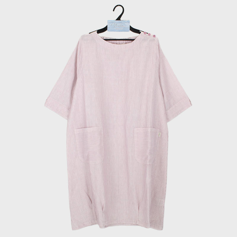 婦人ダブルガーゼ5分袖ワンピース(ストライプ)《WEB》
