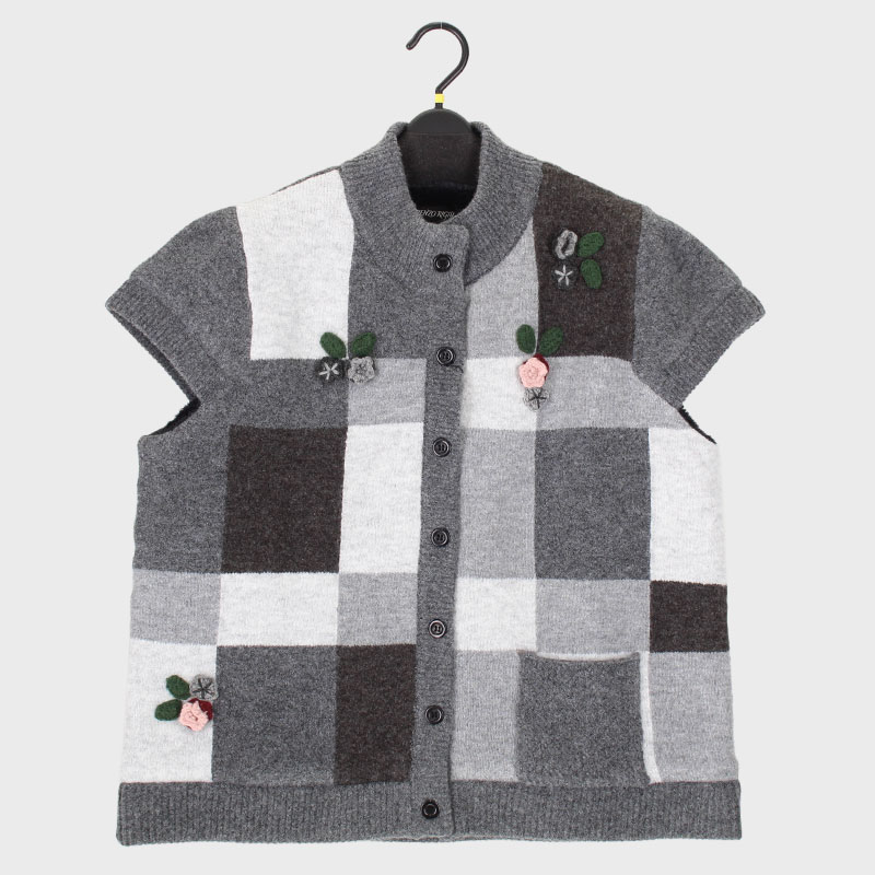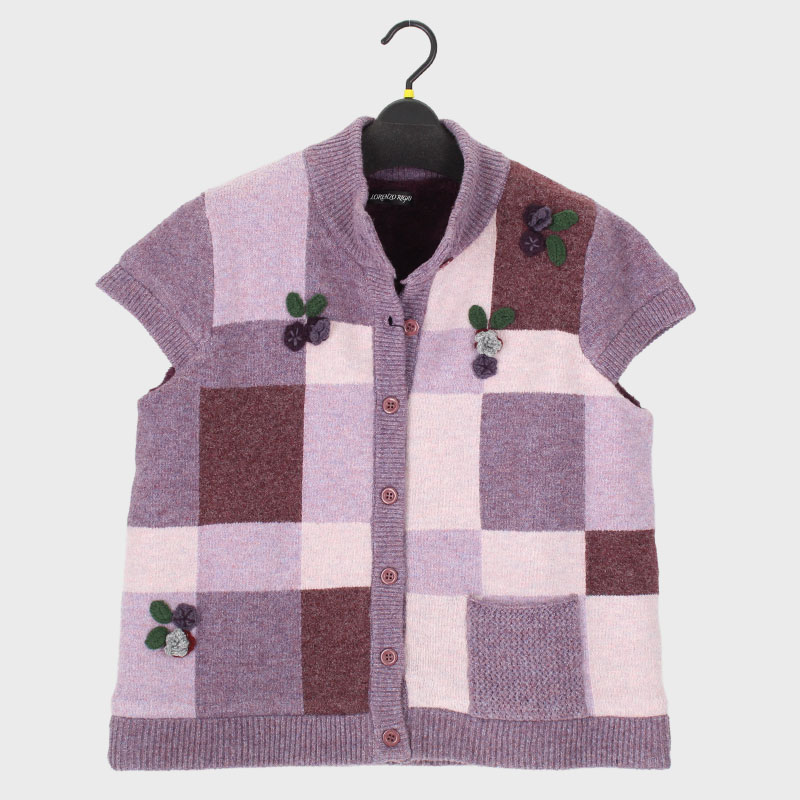 婦人『もちもち裏ボア』S寸モチーフ付パネル配色カップ袖ベスト