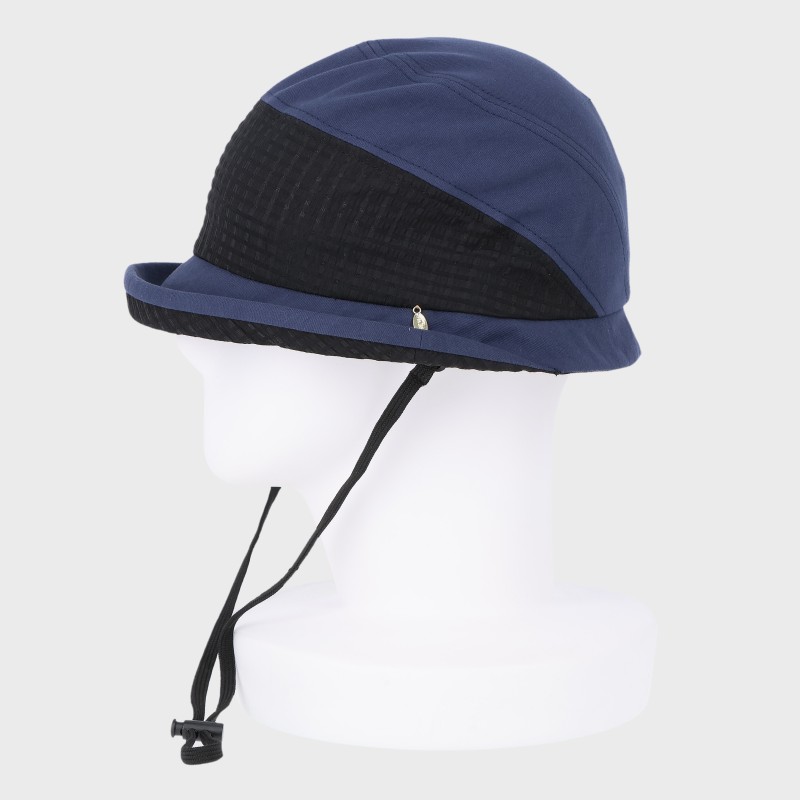 『飛ばない帽子』ミニチャーム付き切替え小つばハット/あご紐付き・UPF+50