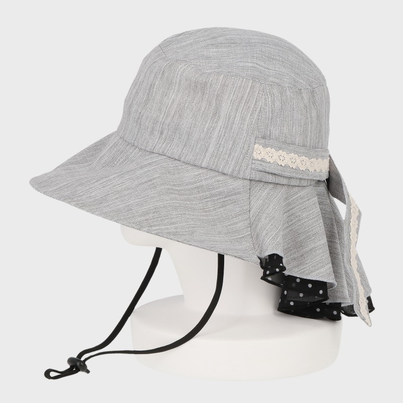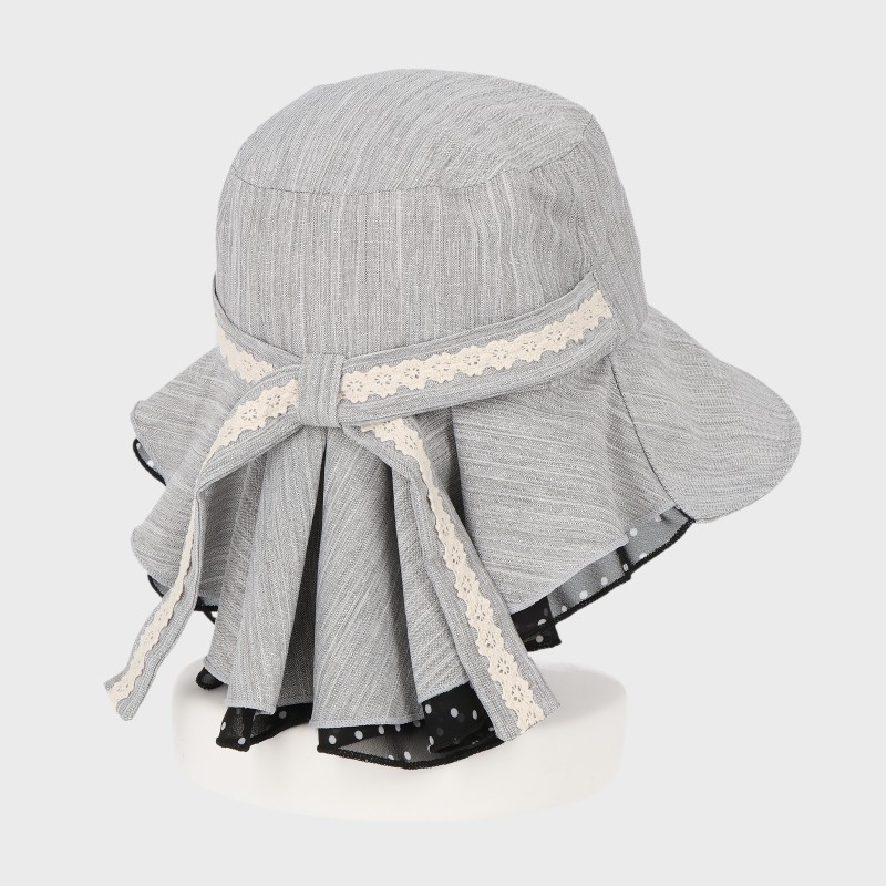 大西衣料(株)が運営する、【公式】卸・仕入れサイト『SELF WEB SHOP』で 小さな飛ばないタレ付き帽子(水玉&レース)/あご紐付き・UPF50+ をお仕入れ!