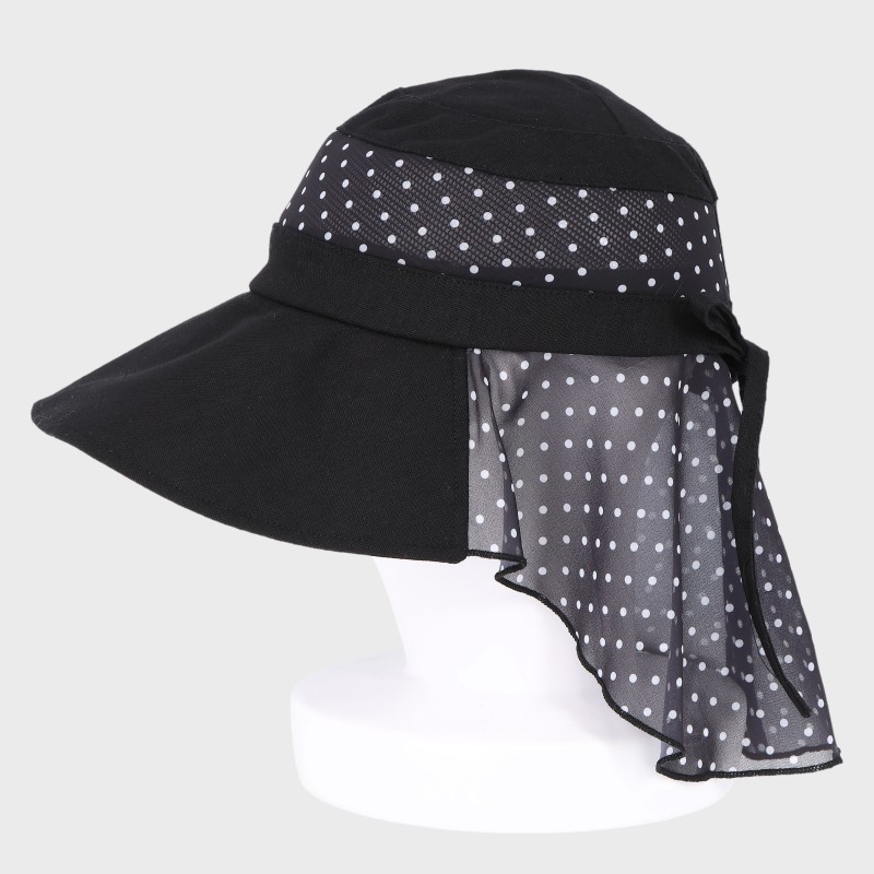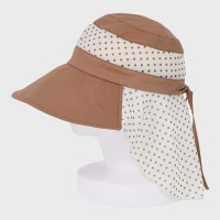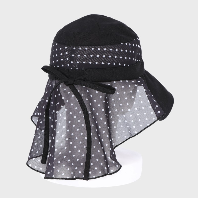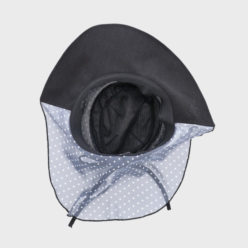 『風通速乾』水玉柄切替えタレ付きハット/頭裏メッシュ