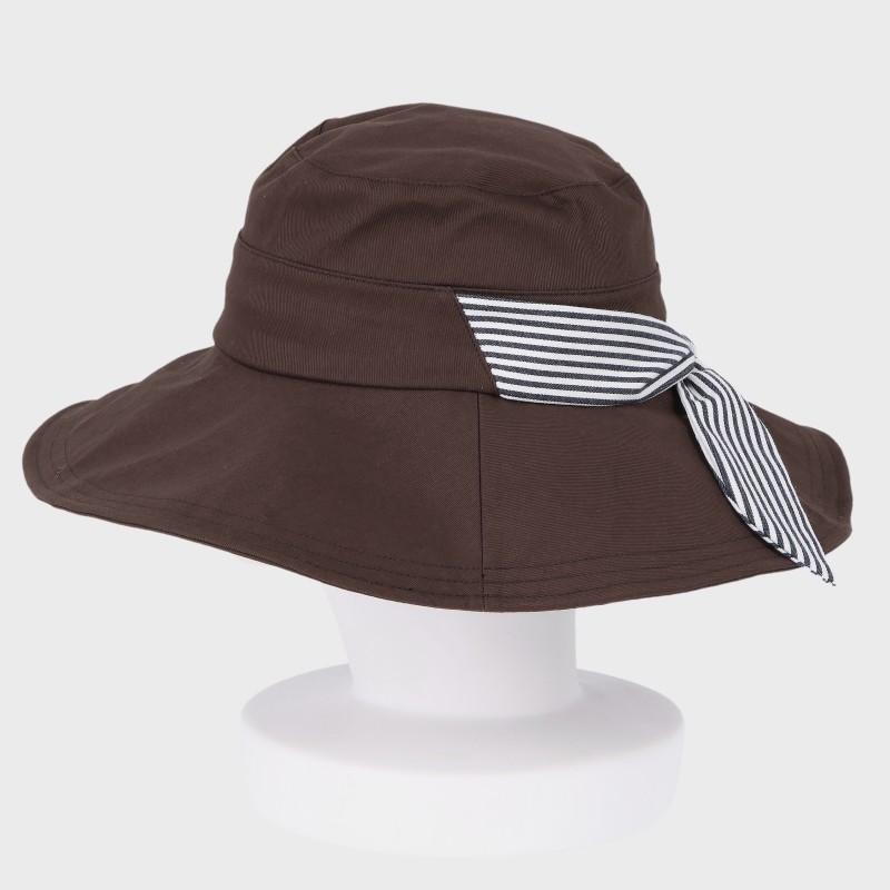 大西衣料(株)が運営する、【公式】卸・仕入れサイト『SELF WEB SHOP』で 婦人『心も晴れるおでかけ帽子』つば先ワイヤー入りつば広ストライプリボンハット/UPF50+・あご紐ループ付 をお仕入れ!