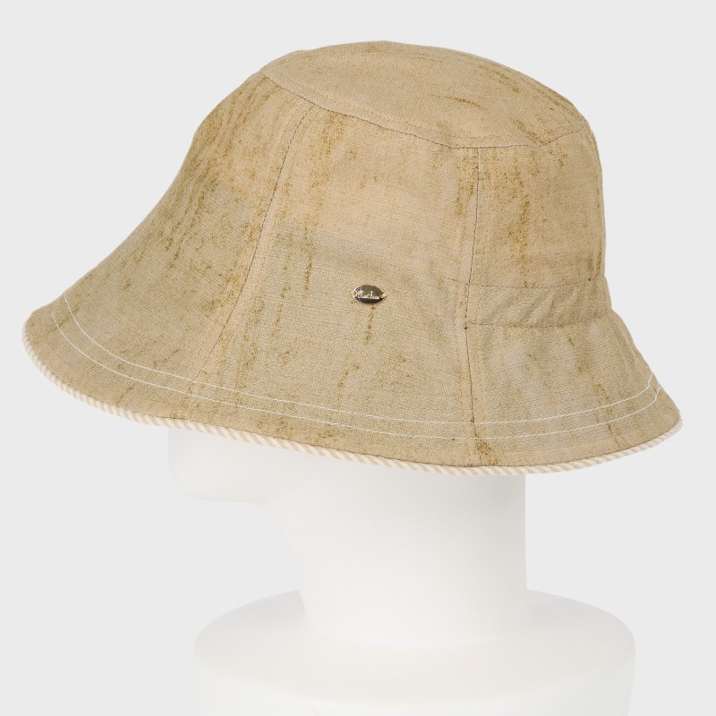 大西衣料(株)が運営する、【公式】卸・仕入れサイト『SELF WEB SHOP』で 『遮光・遮熱』つば裏ストライプ麻混後ろゴムクロッシェハット/UPF50+風飛び防止ストラップ付 をお仕入れ!