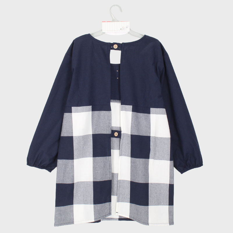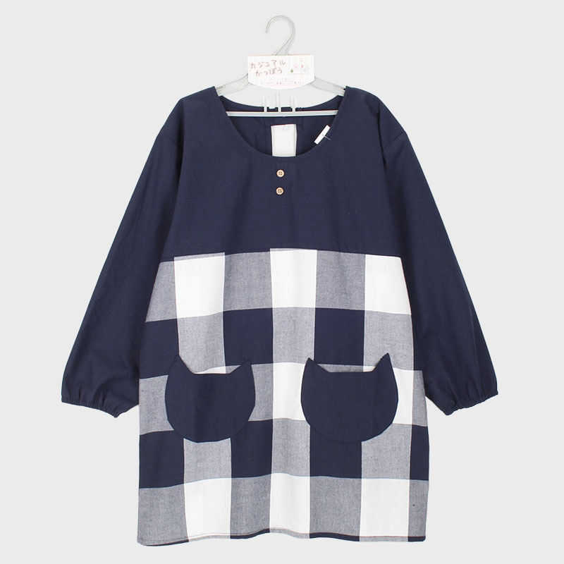 婦人先染めネコポケット切り替えカッポー(ボタン×ボタン)