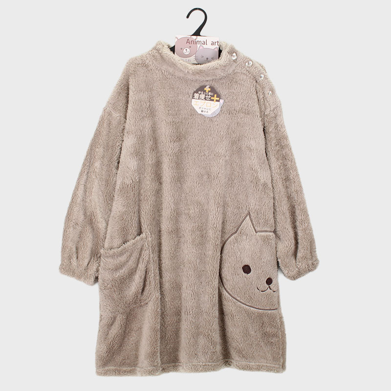 婦人ボアハイネックかぶり型カッポー(ネコアップリケ付き)
