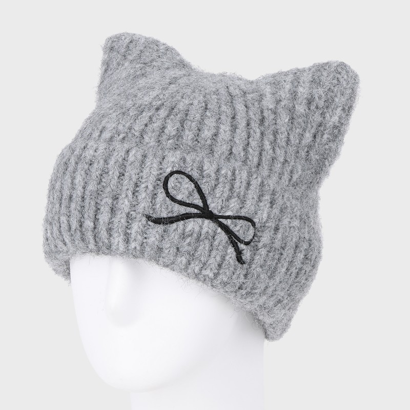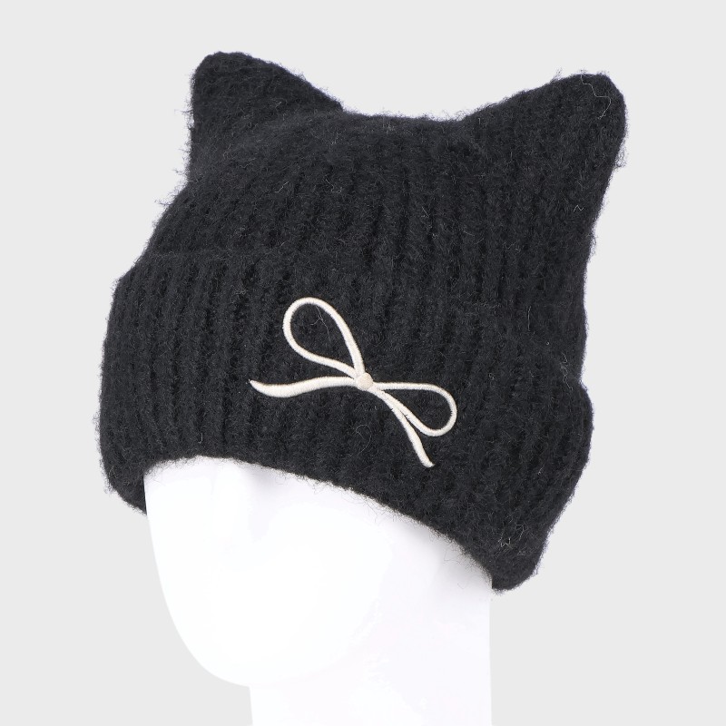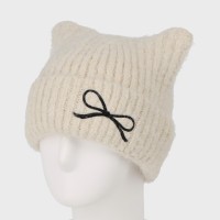 『猫シリーズ』リボン刺しゅう付きネコ耳ニット帽