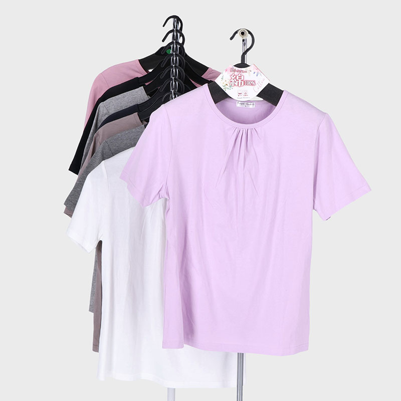 婦人半袖綿100無地胸ギャザーTシャツ