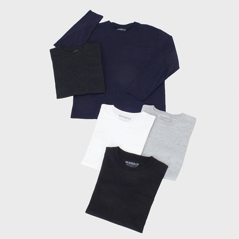 紳士大寸長袖無地片ポケTシャツ