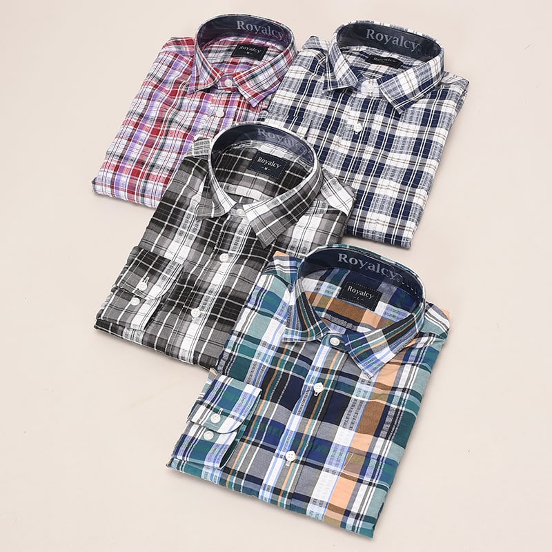 紳士長袖サッカー格子シャツ(ダーク中格子)