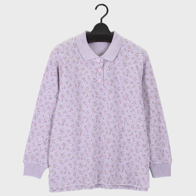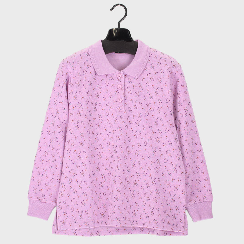 婦人シルバー裏起毛ポロシャツ(小花柄)