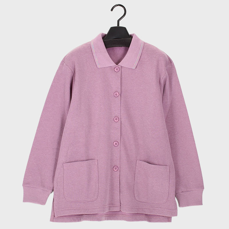 婦人シルバー裏起毛全開ポロシャツ
