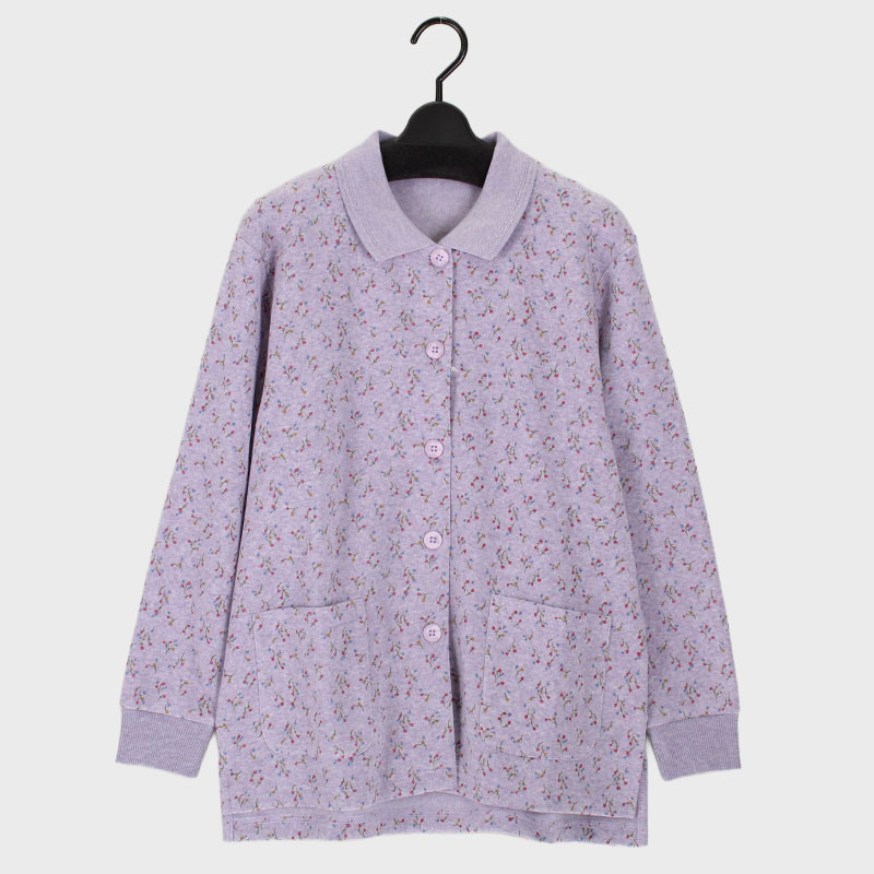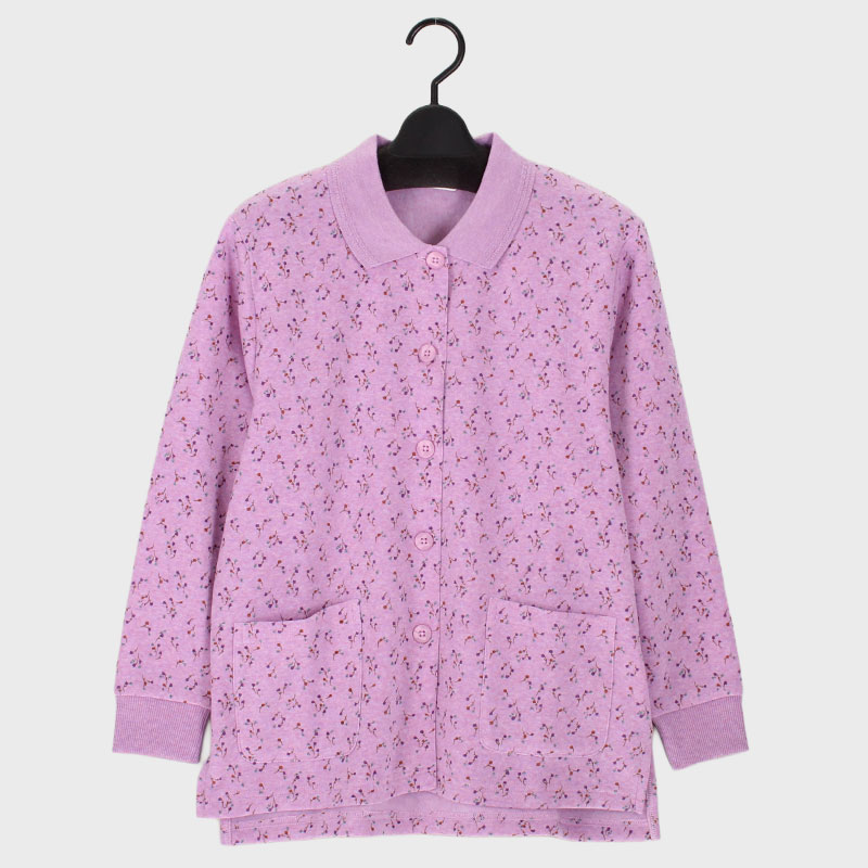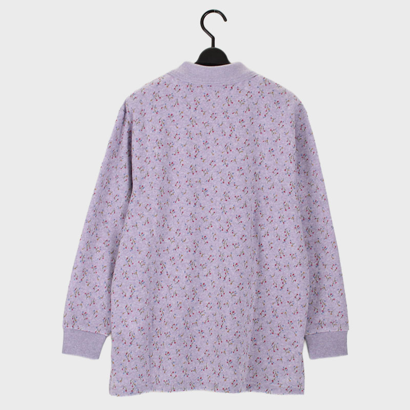 婦人シルバー裏起毛全開ポロシャツ(小花柄)