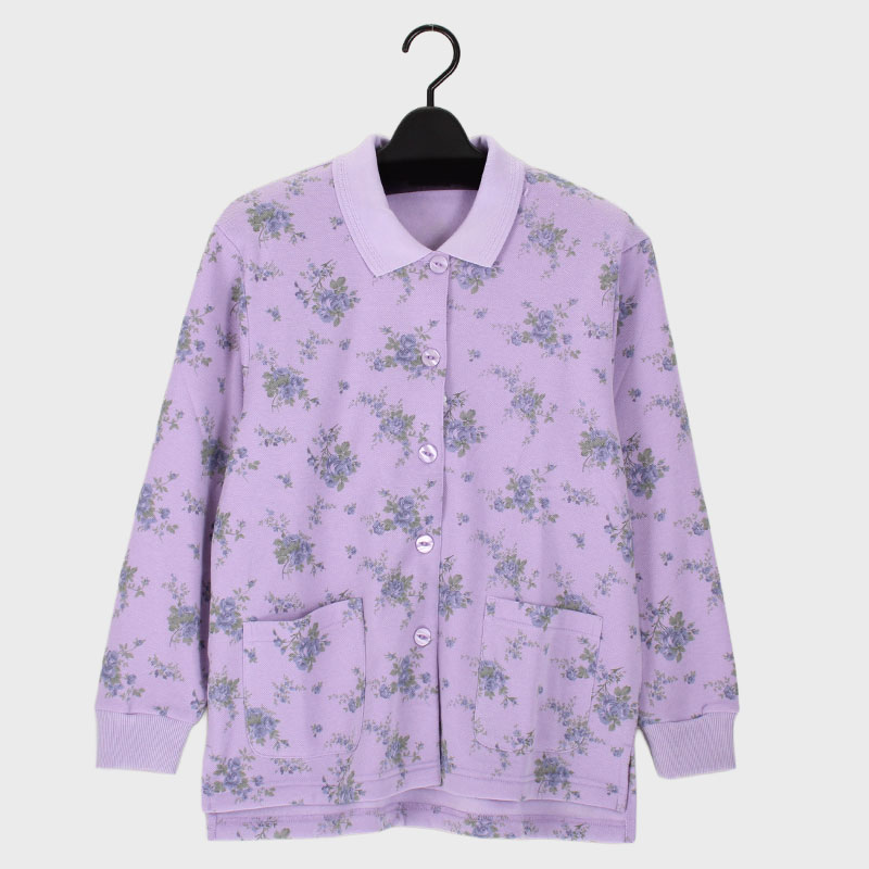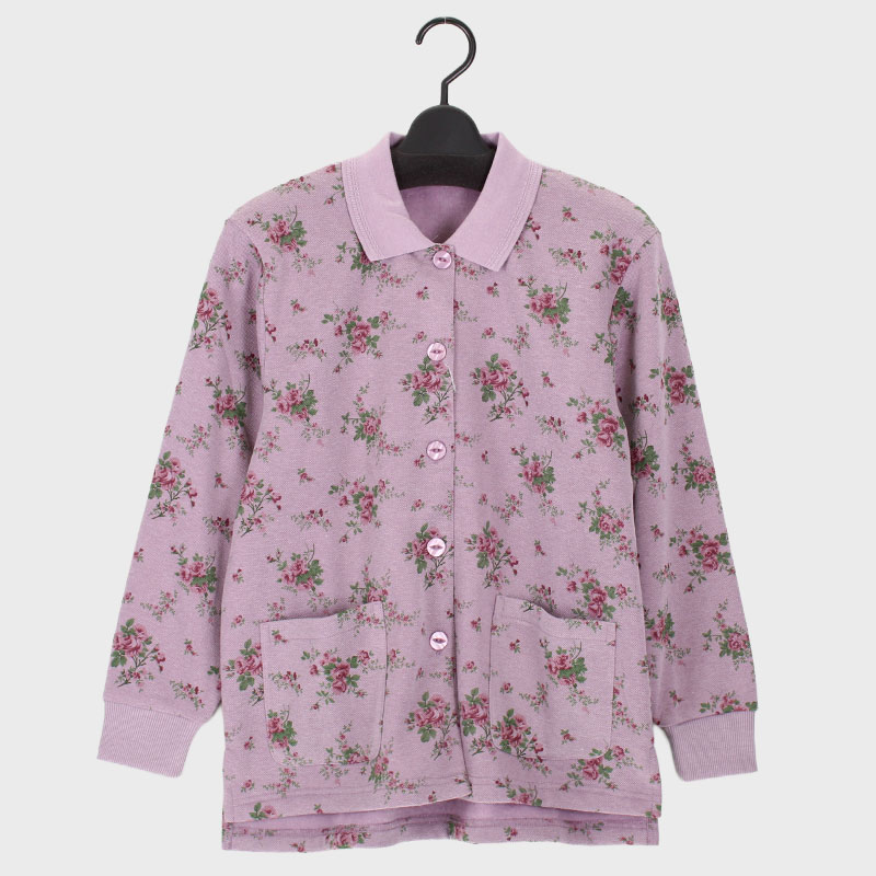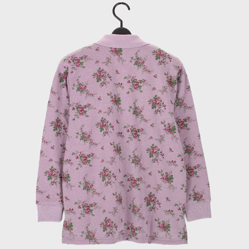婦人シルバー裏起毛全開ポロシャツ(花柄)