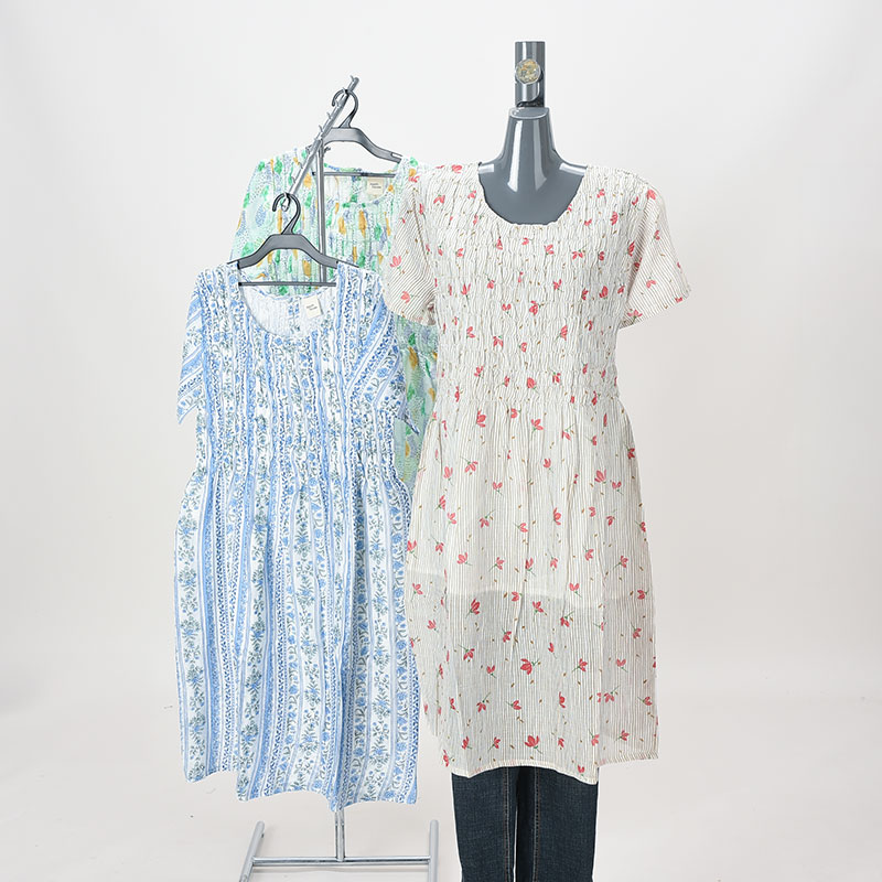 綿100%裏地付きシャーリングワンピース