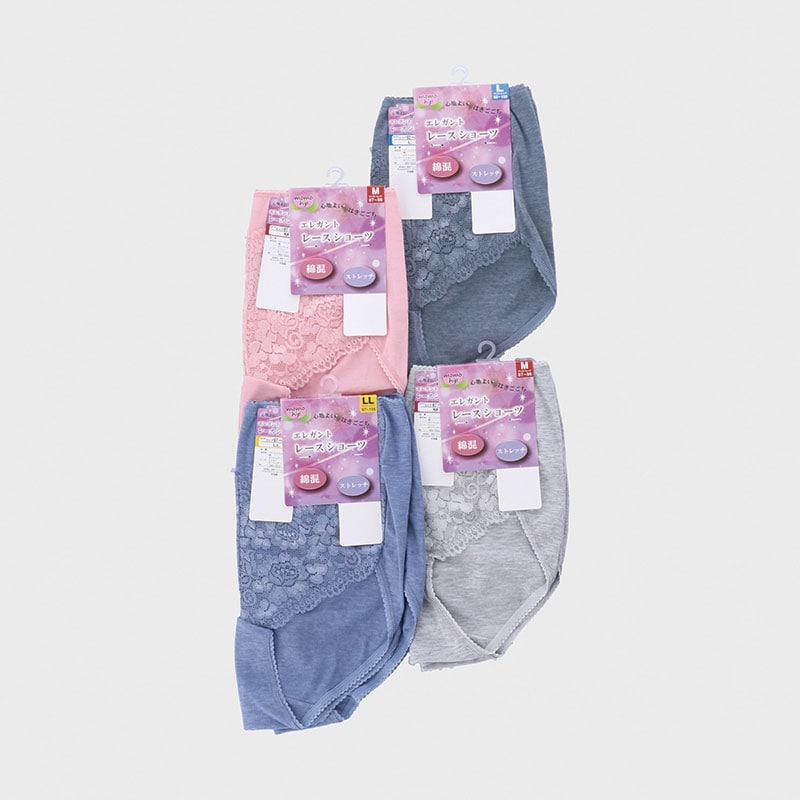 2P綿混フロントレース丈長ショーツ