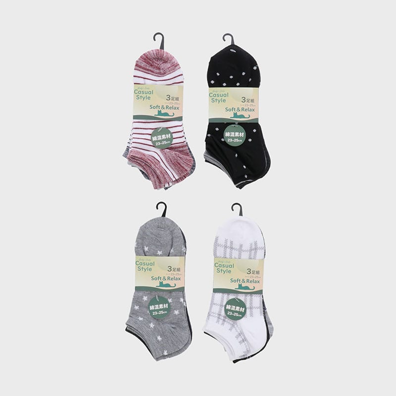 婦人綿混スニーカーソックス3足組「C」