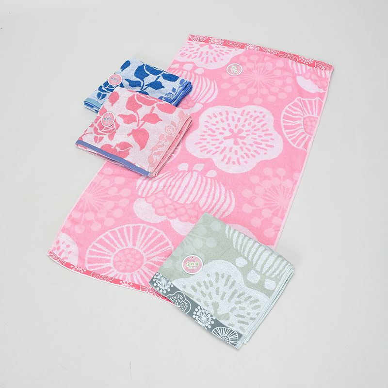 無撚糸ジャガード花柄バスタオル