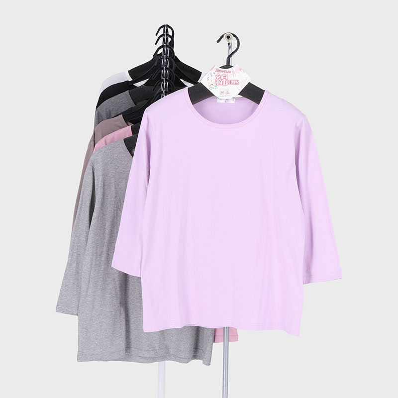 婦人大寸7分袖綿100無地Tシャツ