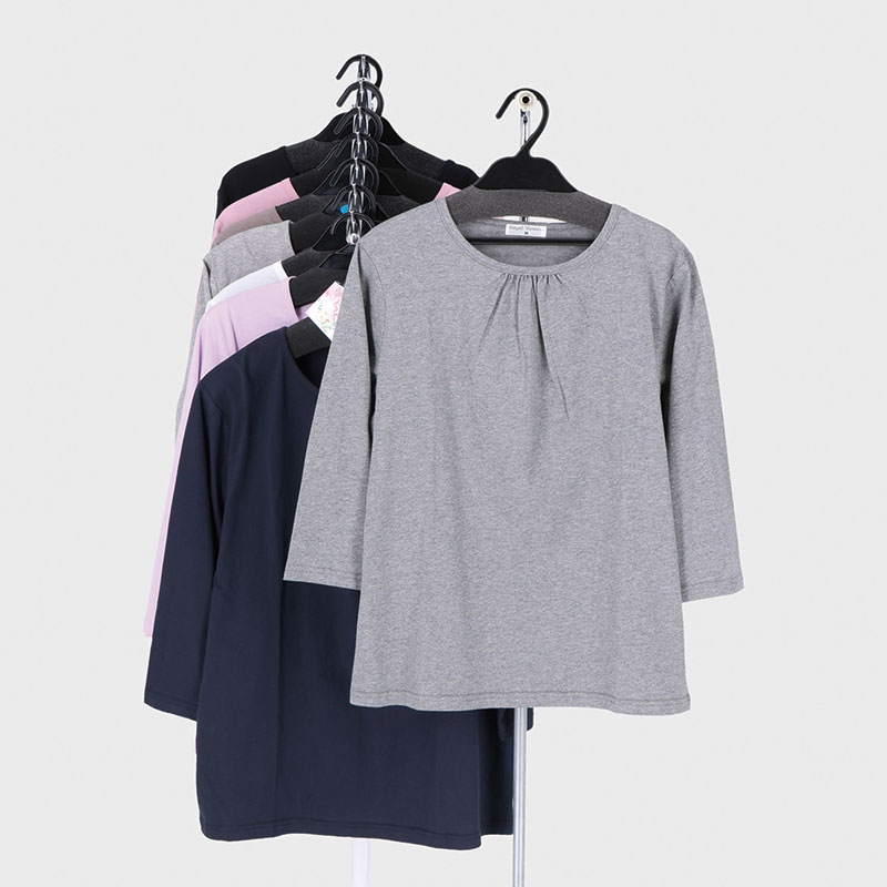 婦人7分袖綿100無地胸ギャザーTシャツ