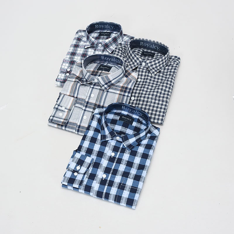 紳士長袖サッカー格子シャツ(ダーク大格子)
