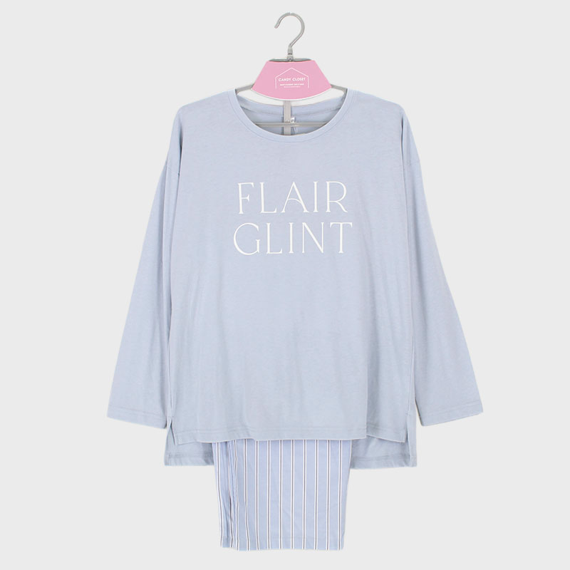 婦人『candycloset』天竺長袖Tスーツパジャマ(ストライプ)
