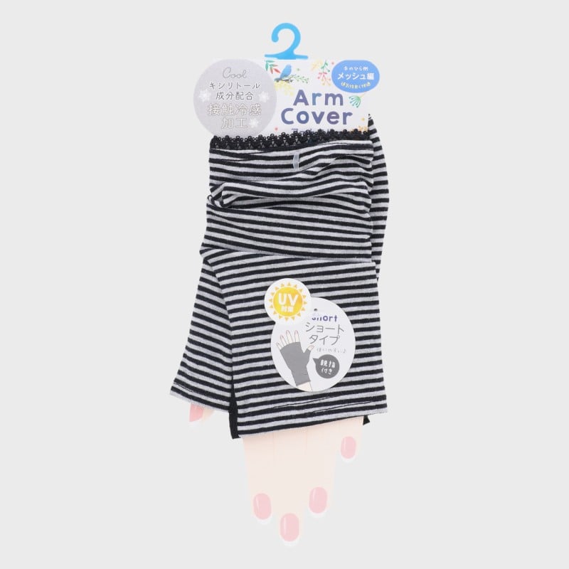 婦人『親指付き 裏メッシュ』アームカバー『ボーダー』