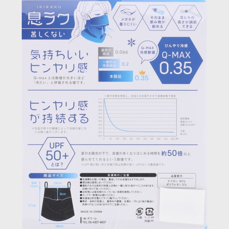 男女兼用『息ラク 冷感フェイス&ネックカバー』フェイス&ネックカバー『接触冷感 』