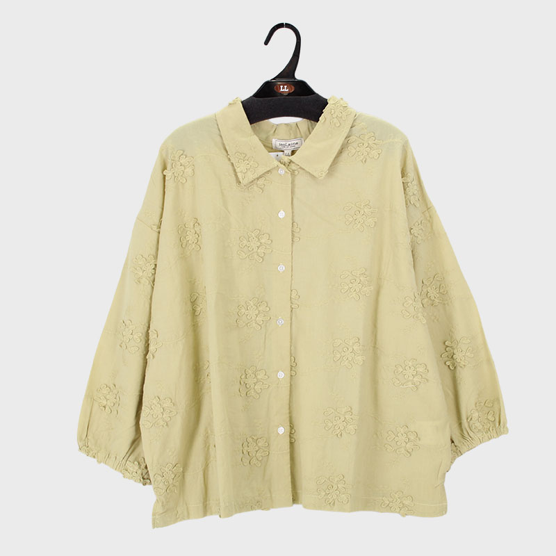 大西衣料(株)が運営する、【公式】卸・仕入れサイト『SELF WEB SHOP』で 婦人『isoLaine』7分袖カットソー切替3D刺しゅうブラウス をお仕入れ!