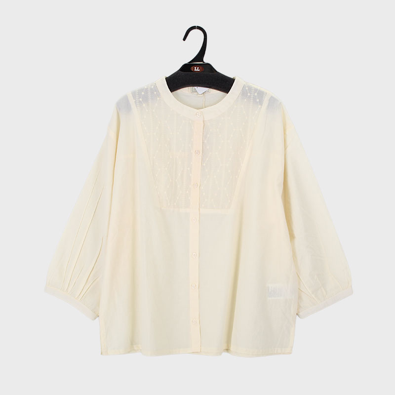 大西衣料(株)が運営する、【公式】卸・仕入れサイト『SELF WEB SHOP』で 婦人『isoLaine』7分袖前身刺しゅう切替ブラウス をお仕入れ!