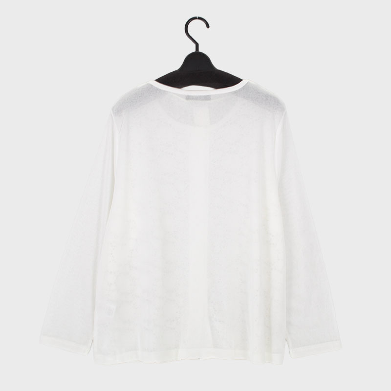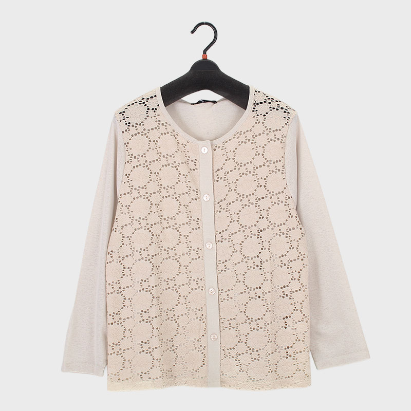婦人LLサイズ透かしレース丸首カーディガン